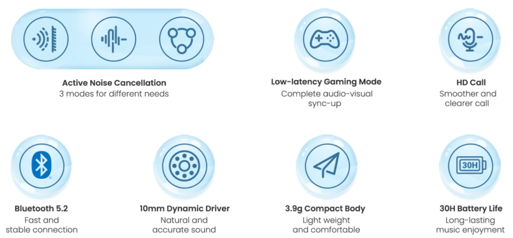 The AAC audio codec of the Haylou Moripods ANC Bluetooth Earbuds ensures the restoration of more sound details, providing a rich and immersive listening experience. You won’t miss a beat with the low-latency sound and its more sensitive recognition, making every note and sound come to life.