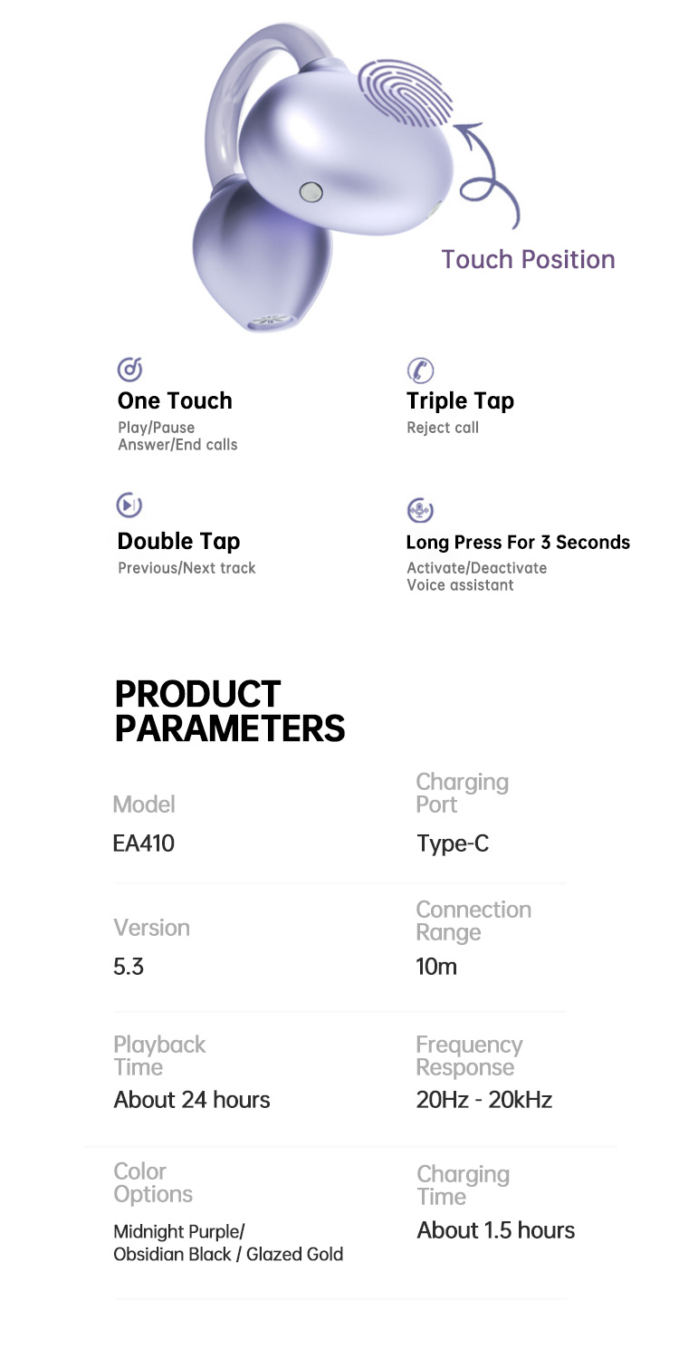 Built for lasting enjoyment, the Lenovo EA410 provides up to 24 hours of continuous music playback with its robust battery life. Switch between earpieces for even longer usage, ensuring your tunes accompany you throughout your day.