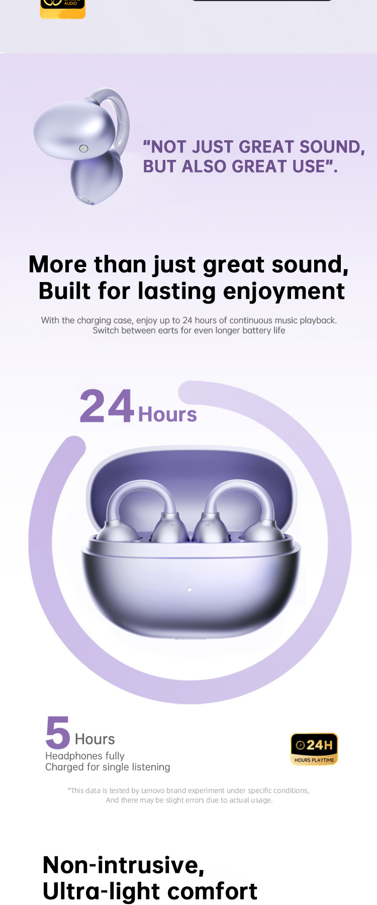 Built for lasting enjoyment, the Lenovo EA410 provides up to 24 hours of continuous music playback with its robust battery life. Switch between earpieces for even longer usage, ensuring your tunes accompany you throughout your day.