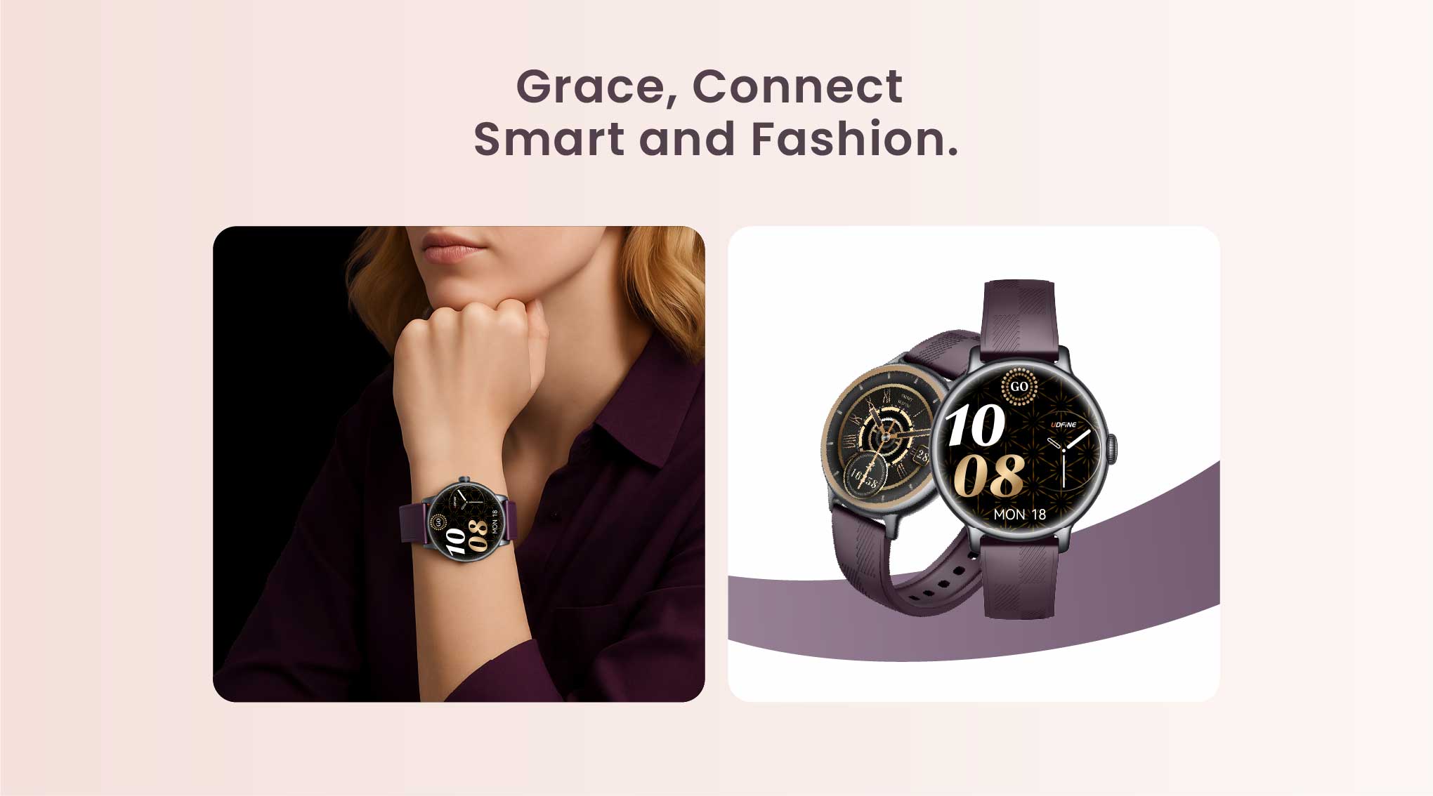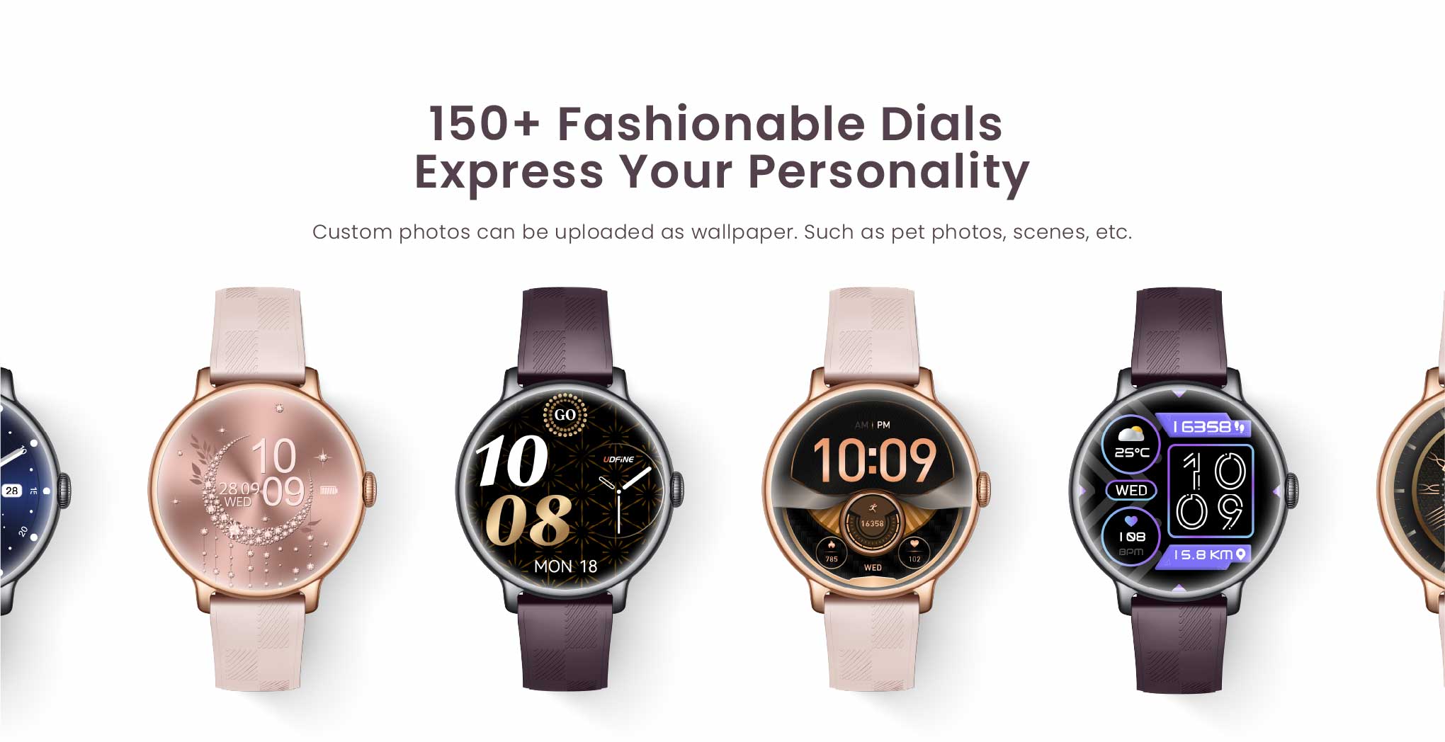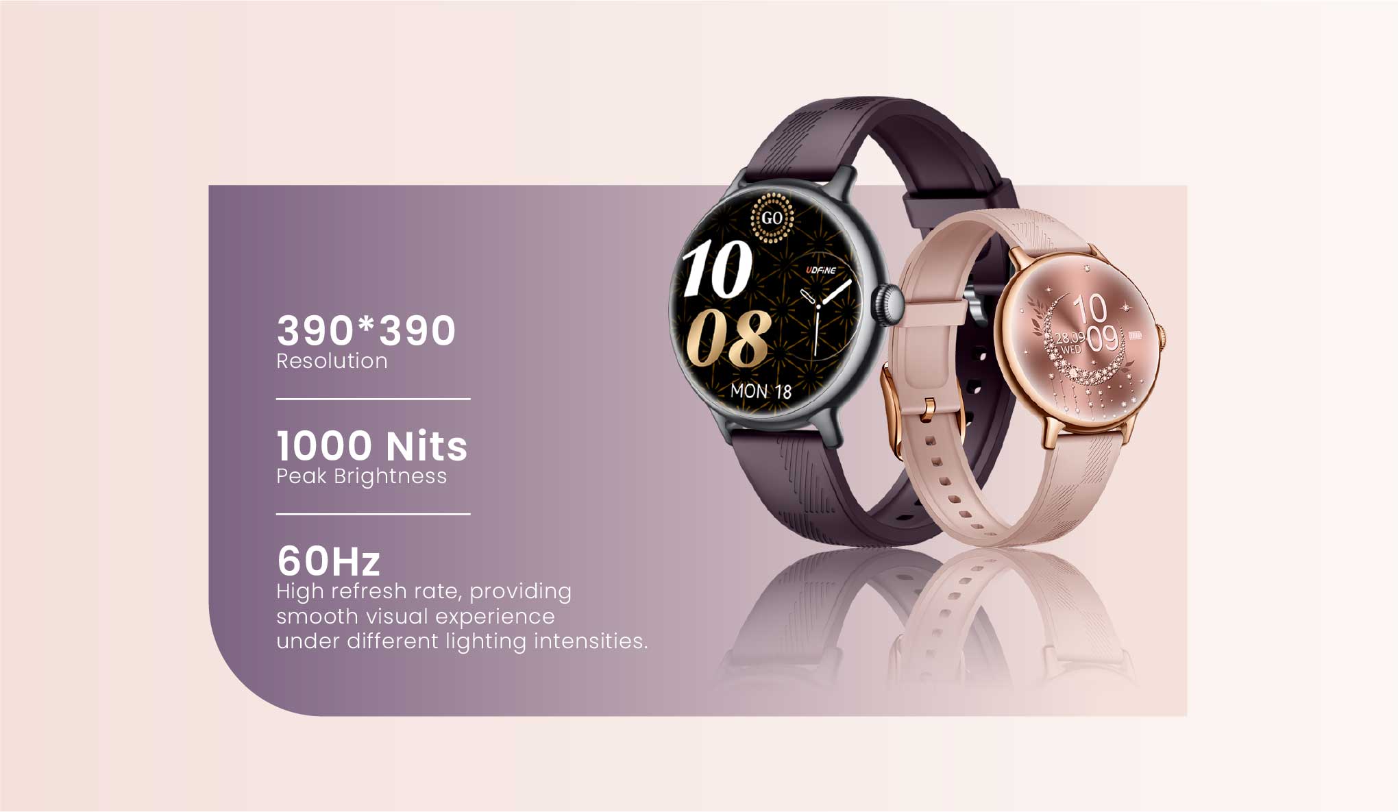 Udfine Watch Grace features a 1.19” full-color,2.5D curved surface and ultra sensitive AMOLED display for a sophisticated visual experience. With AOD,no wrist raising, time and notice at a glance.