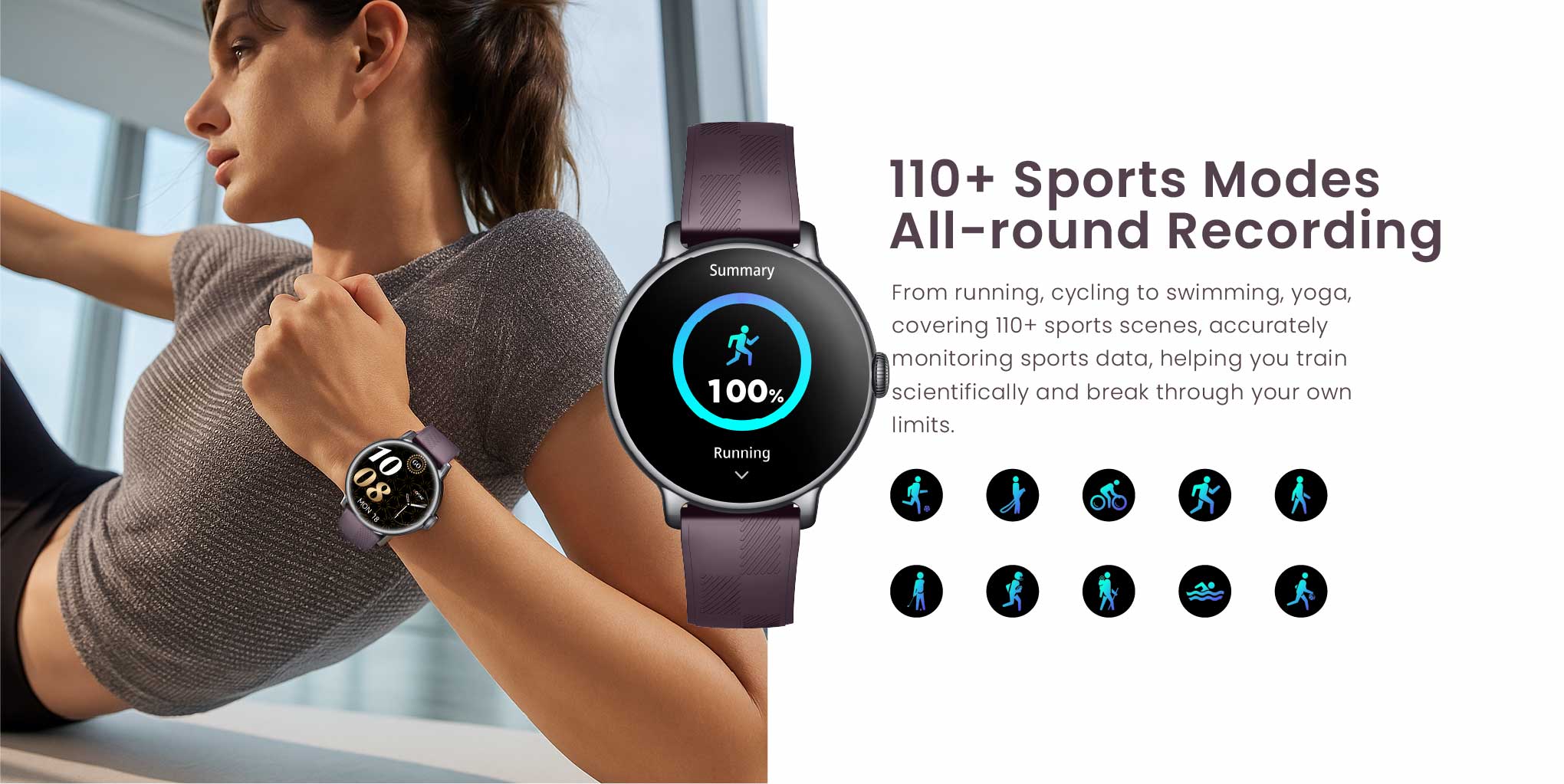 From running, cycling to swimming, yoga, covering 110+ sports scenes, accurately monitoring sports data, helping you train scientifically and break through your own limits.