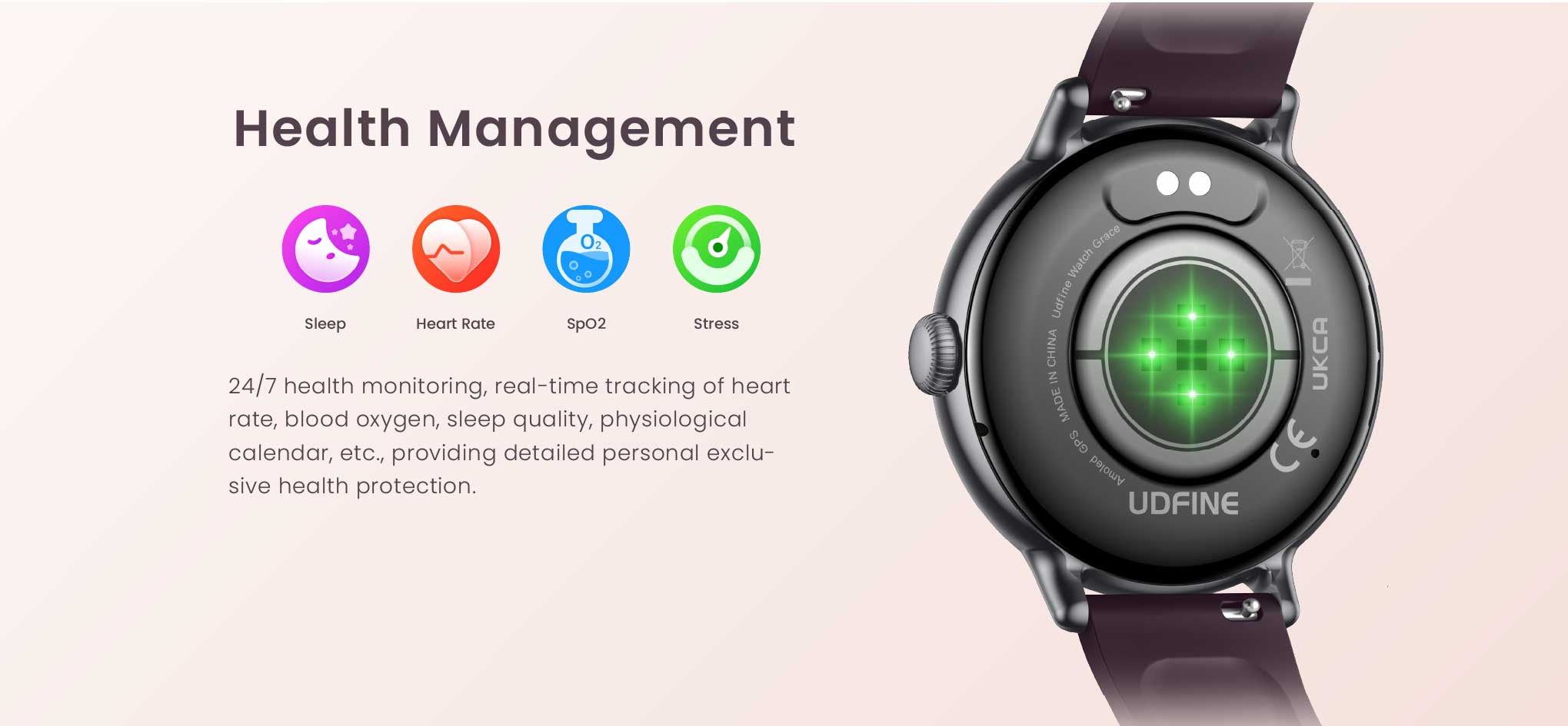 24/7 health monitoring, real-time tracking of heart rate, blood oxygen, sleep quality, physiological calendar, etc., providing detailed personal exclusive health protection.