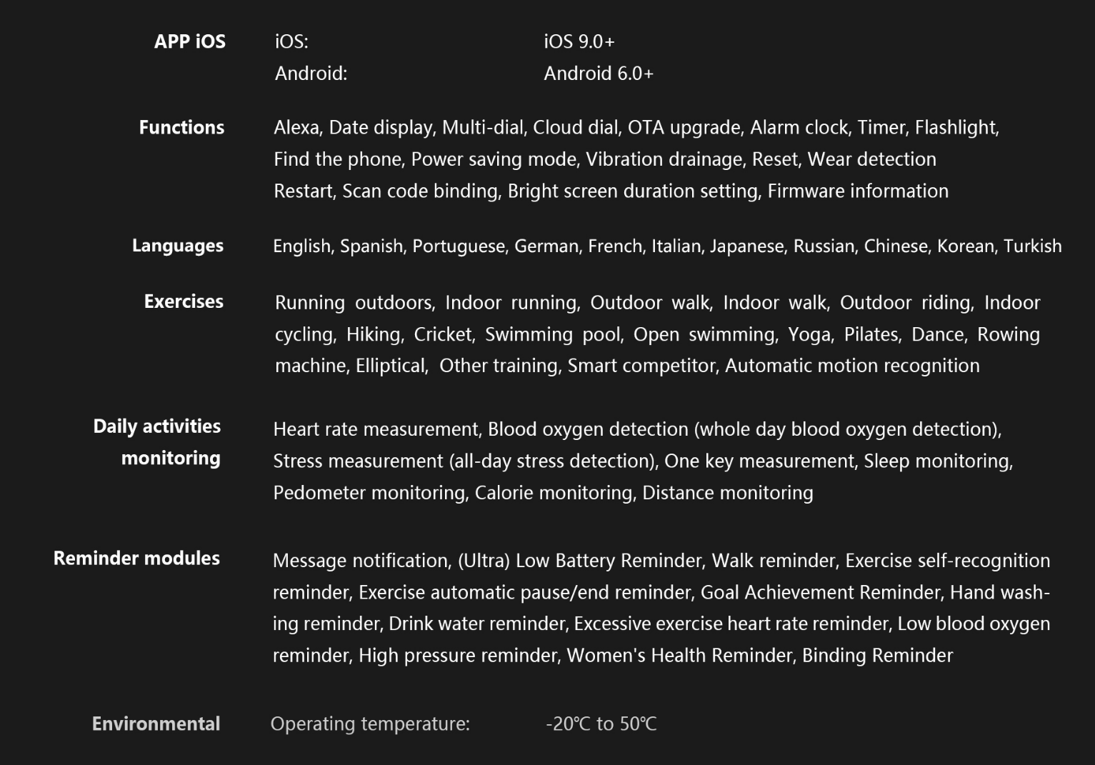 - 100+ Sports Modes & Smart Recognition & Running Courses