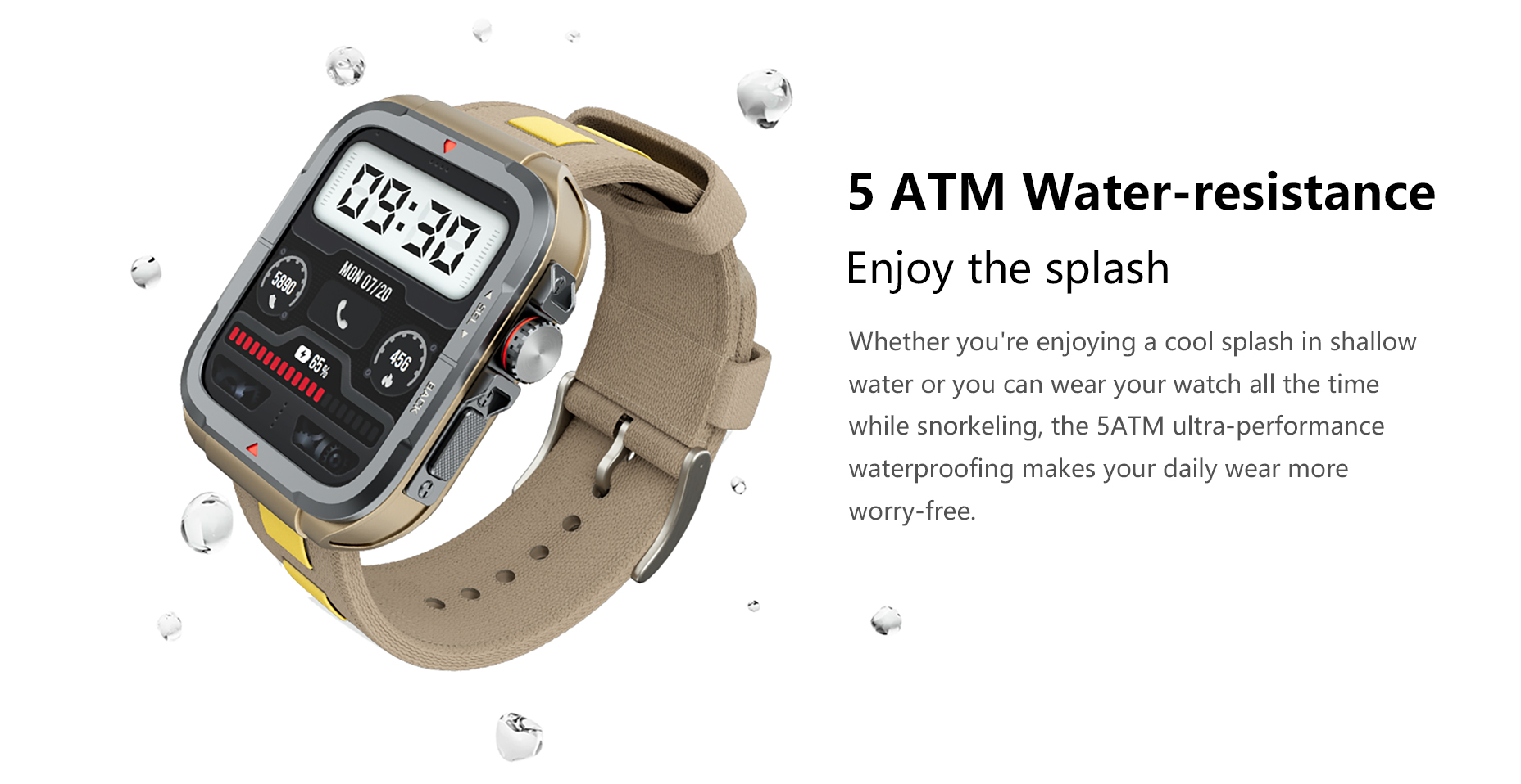 Whether you’re enjoying a cool splash in shallow water or you can wear your watch all the time while snorkeling, the 5ATM ultra-performance waterproofing makes your daily wear more worry-free.