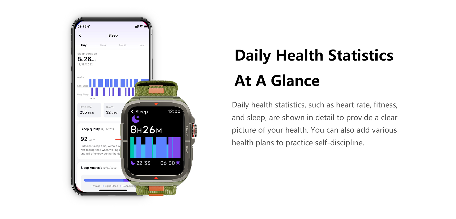 Daily health statistics, such as heart rate, fitness, and sleep, are shown in detail to provide a clear picture of your health. You can also add various health plans to practice self-discipline.
