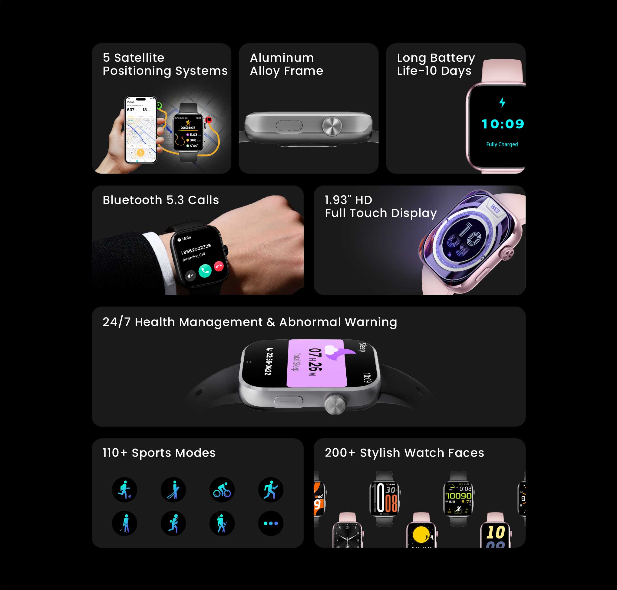 With a super large 1.93” full-color display, you can have a comprehensive view of the content displayed. The key is in line with the ergonomic side key design, no matter in daily use or sports, it can be easily operated to avoid accidental touch.