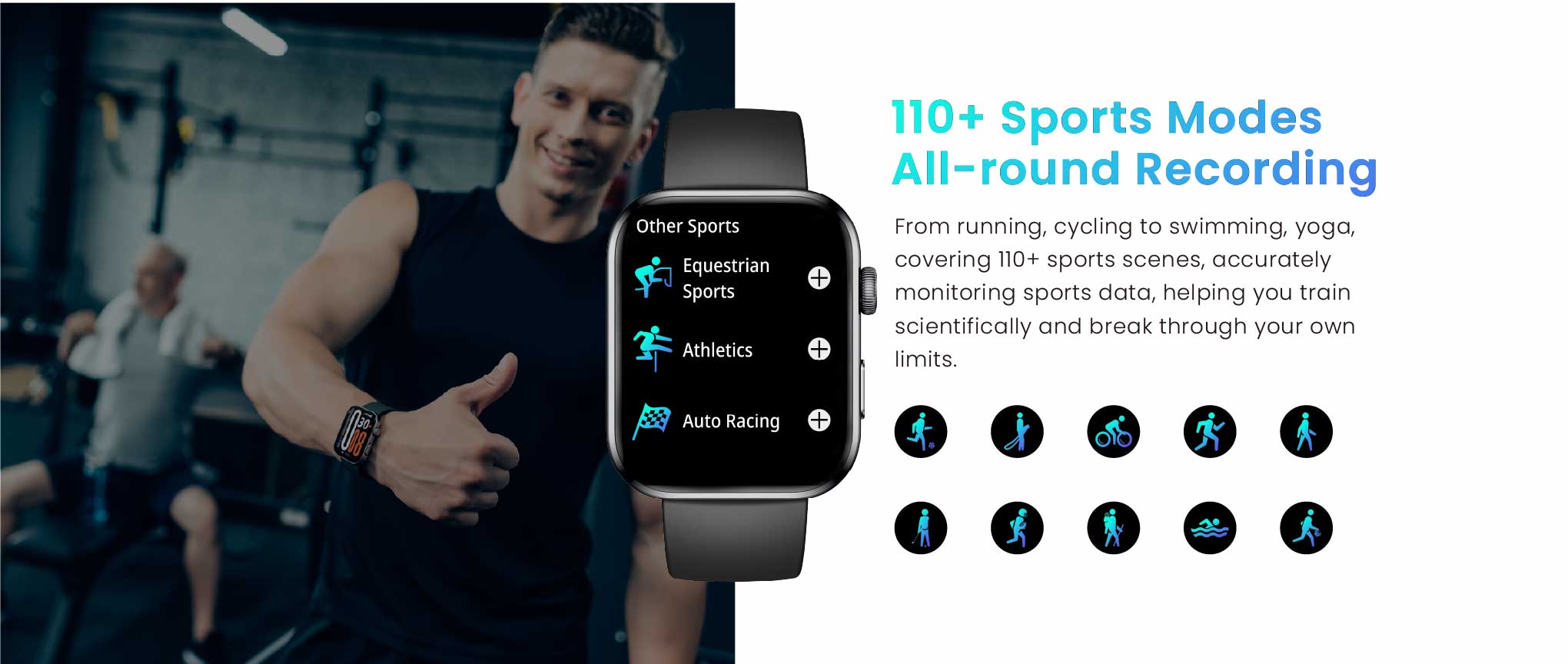From running, cycling to swimming, yoga, covering 110+ sports scenes, accurately monitoring sports data, helping you train scientifically and break through your own limits.