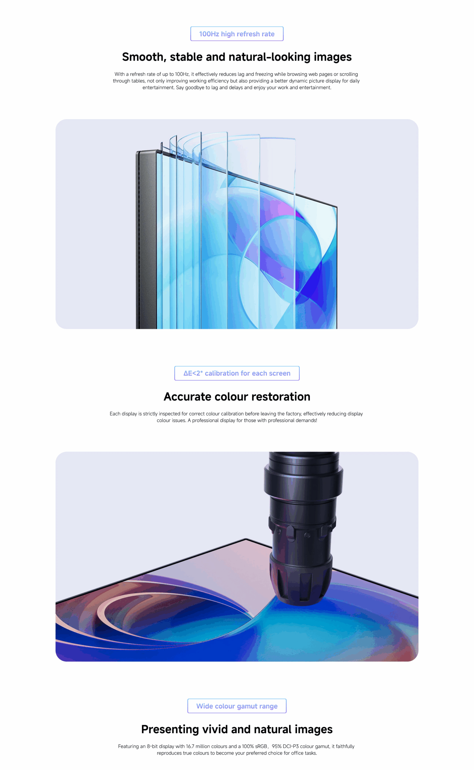*100% sRGB refers to the sRGB colour gamut ratio in a CIE 1931 colour space being calculated as 100%.