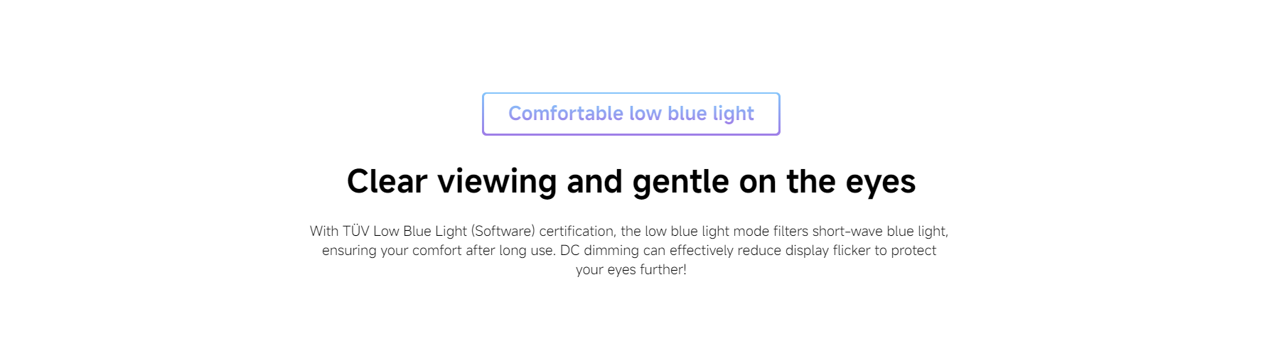 • Eye Care Technology: TUV-certified blue light reduction and flicker-free display for reduced eye strain during extended use.