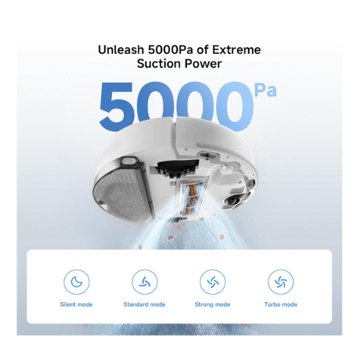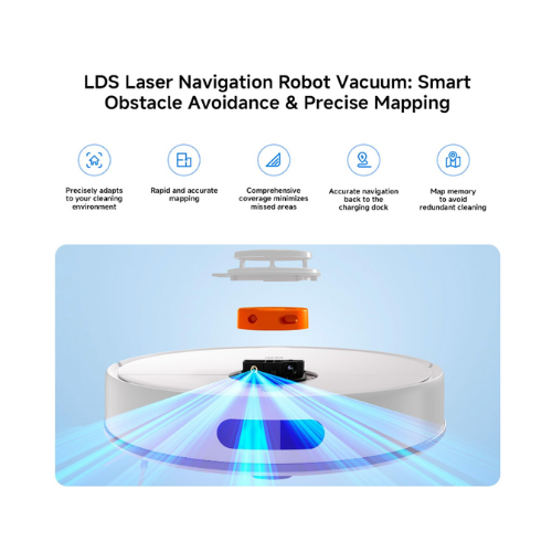 LDS laser navigation system Multiple sensors & Smart control 5,000Pa powerful suction fan blower High-capacity dustbin and water tank
