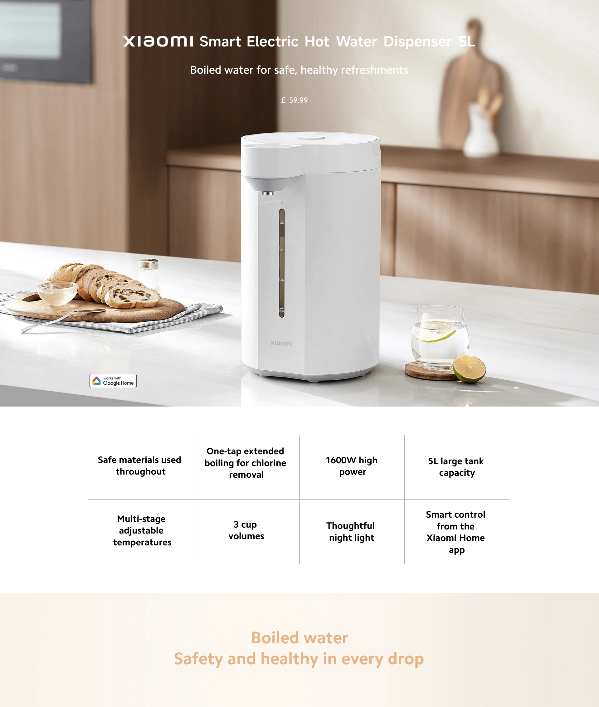 Safe & Convenient: Features automatic shut-off, dry boil protection, and a large 5L capacity for family use.