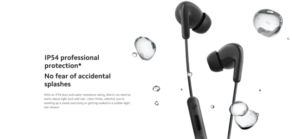 *IP54 dust and water resistance applies to the earbuds themselves, not the charging case. Please do not use your earbuds around hot water. Your earbuds cannot be used when bathing or showering. Please try to avoid using your earbuds during strenuous exercise. Excessive sweat during exercise may cause damage to the earbuds. This product is dust-resistant, splash-proof and water-resistant at the time of purchase. However, these properties are not permanent and may diminish over time with everyday wear and tear. Your warranty does not cover damage caused to your device by immersion in liquid.